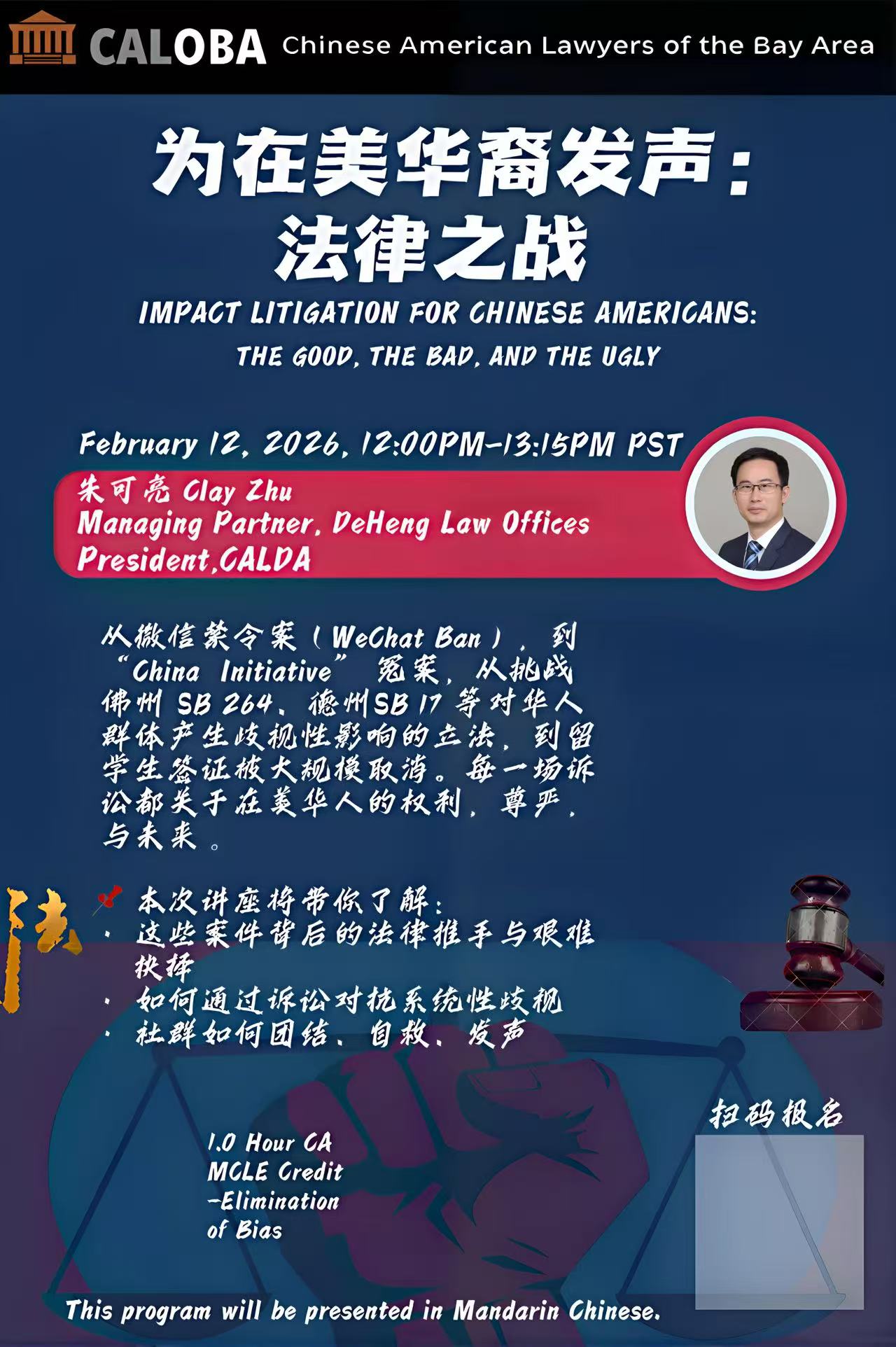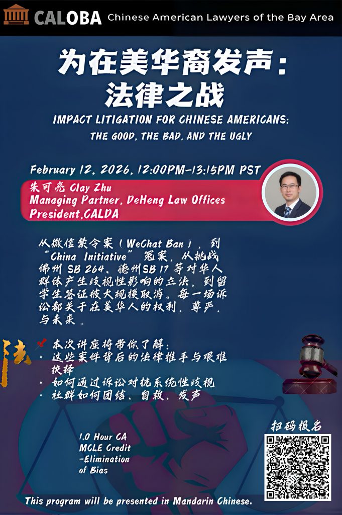 朱可亮(Clay Zhu)为德恒律师事务所硅谷办公室管理合伙人、CALDA(