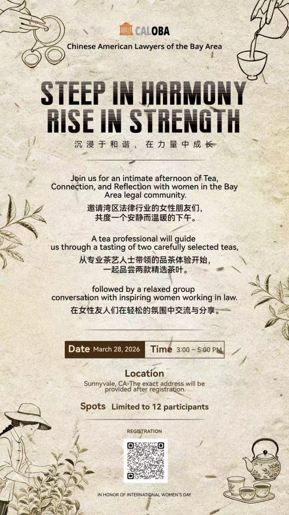 « All Events CALOBA Event: Steep in Harmony Rise in Strength (March 28, 2026) March 28 @ 3:00 PM - 5:00 PM $30.00 « CALOBA 2026 Chinese New Year Gala (February 28, 2026) Tickets The numbers below include tickets for this event already in your cart. Clicking "Get Tickets" will allow you to edit any existing attendee information as well as change ticket quantities. General Tickets General Tickets $ 30.00 10 available Decrease ticket quantity for General Tickets - Quantity Increase ticket quantity for General Tickets + Add to calendar Google Calendar iCalendar Outlook 365 Outlook Live Details Date: March 28 Time: 3:00 PM - 5:00 PM Cost: $30.00 Tickets The numbers below include tickets for this event already in your cart. Clicking "Get Tickets" will allow you to edit any existing attendee information as well as change ticket quantities. General Tickets General Tickets $ 30.00 10 available Decrease ticket quantity for General Tickets - Quantity Increase ticket quantity for General Tickets +